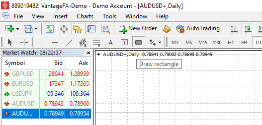 Now you are all set up with the rectangle tool, you can set about identifying support and resistance zones. Just like with traditional method, the basic idea is to find areas where price has reacted before and is likely to do so again. You then mark these areas on your chart. It is key to recognize the area where price has previously demonstrated a tendency to find either support or resistance.
